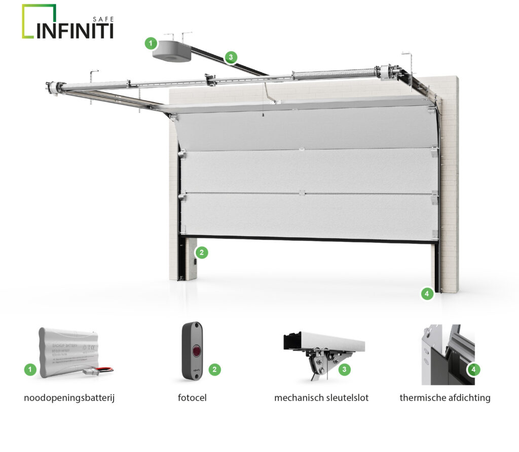 Gemaakt met de beste onderdelen. INFINITI sectionaaldeuren zijn duurzaam en bieden veiligheid voor elk huis. Dankzij een breed assortiment accessoires is het mogelijk om ze aan vele opstellingen aan te passen.